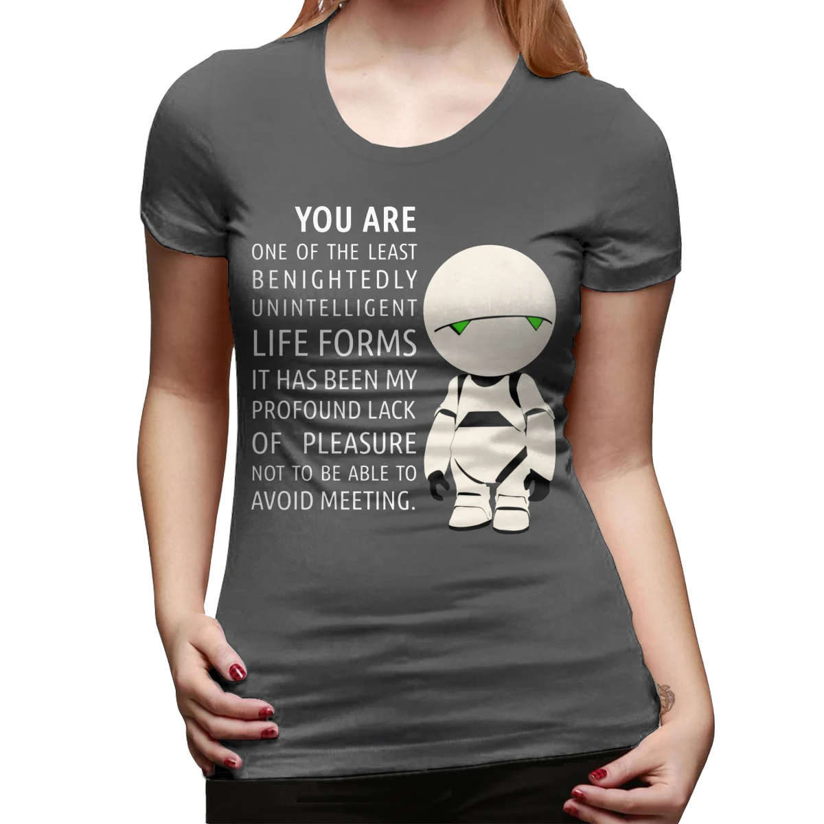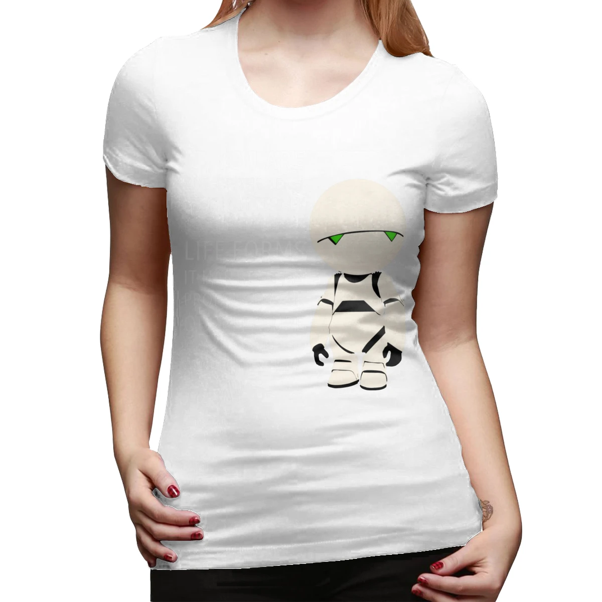 Images of Marvin Robot T-Shirt Marvin Intelligence T Shirt Silver Pattern Women tshirt O Neck Simple Ladies Tee Shirt :